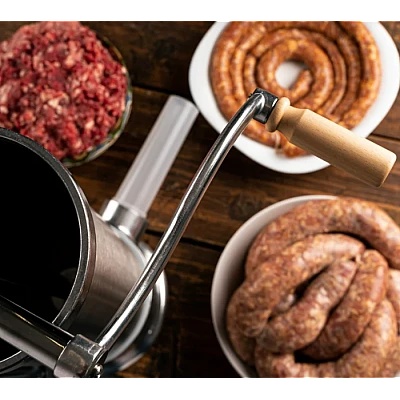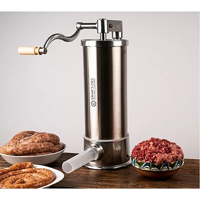 Masina carnati verticala 3kg, 5 palnii, constructie inox, Craft-Tec MX129 - MX129 Masina de carnati verticala Craft-Tec MX129 este solutia ideala pentru prepararea carnatilor de casa in mod simplu si eficient. Cu o capacitate de 3 kg si un design compact, acest model este perfect pentru gospodarii sau bucatarii cu spatiu limitat. Construita din inox durabil si echipata cu 5 palnii de diferite dimensiuni, masina permite obtinerea de carnati uniformi, fara bule de aer, adaptati oricarei retete traditionale sau moderne. Caracteristici principale: Capacitate de 3 kg, perfecta pentru utilizare casnica Constructie din inox, durabila si usor de curatat 5 palnii incluse, pentru carnati de diferite grosimi (10-25 mm) Design vertical, ideal pentru economisirea spatiului Mecanism manual pentru control total in timpul procesului Specificatii tehnice: Capacitate maxima: 3 kg Material: inox/aluminiu Palnii incluse: 10 mm, 15 mm, 19 mm, 22 mm, 25 mm Pachetul contine: Masina carnati verticala Manivela de filet atasabila Accesoriu de prindere pe masa Cheita pentru insurubat Suport pentru palnii 5 palnii de diferite dimensiuni Utilizari: Prepararea carnatilor de casa in gospodarii Retete traditionale pentru sarbatori sau ocazii speciale Bucatarii mici sau bucatari pasionati de preparate din carne Ideala pentru familii care doresc control asupra ingredientelor si calitatii