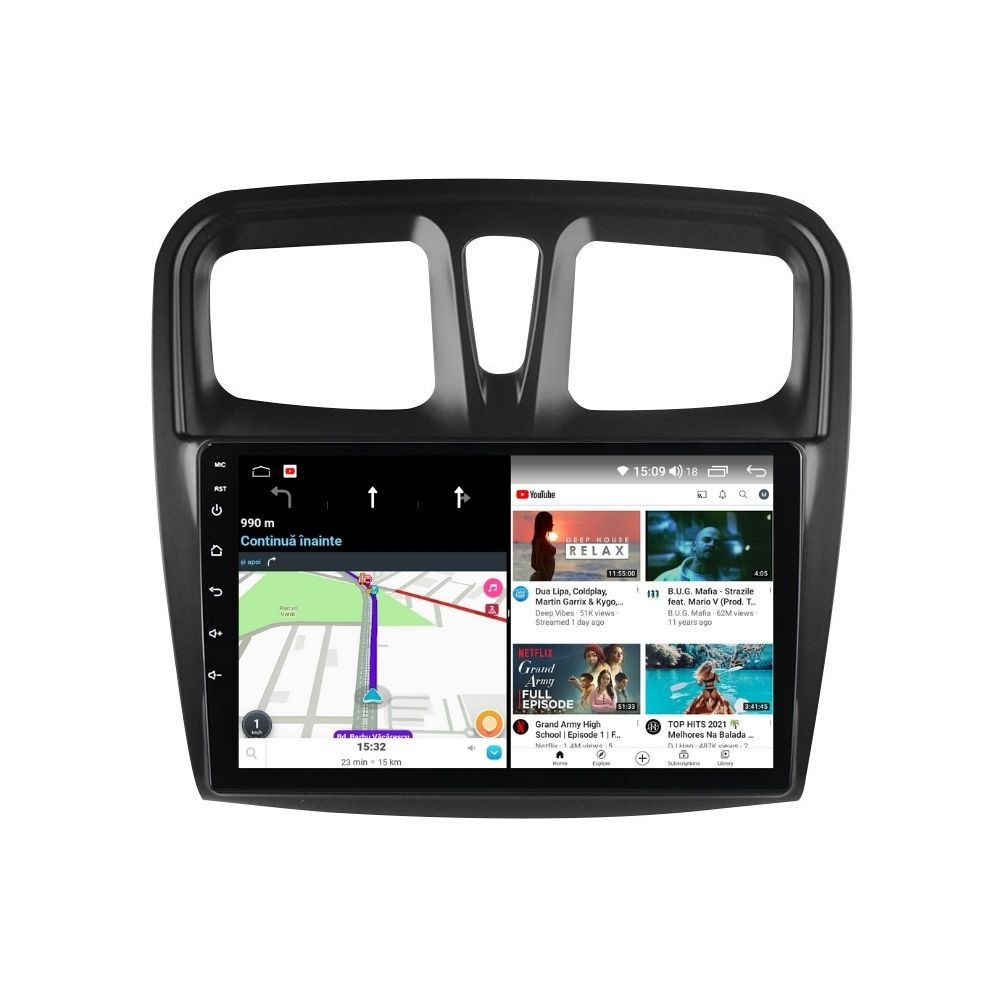 Sistem de operare: Car Android 14 cu meniu în peste 60 de limbi (inclusiv limba română) Procesor: Octa Core ARM Cortex A55 1.6GHz Memorie internă: 2GB RAM + 32GB stocare (extensibilă prin 2 sloturi USB de maxim 64GB) Display: Touchscreen 10 inch QLED HD 1280x720, multi-touch, format 16:9, cu margini curbate și tehnologie 2.5D Chipset GPS: Samsung Sirf Star IV cu 48 de canale (antenă GPS inclusă) Fast Boot: Navigația pornește instant în momentul în care se pune contactul Conectivitate: Slot SIM 4G, Wi-Fi, Bluetooth, 2 x USB, RCA, AUX Plug & Play: Mufă dedicată, navigaţia preia comenzile de pe volanul maşinii şi nu descarcă bateria acesteia Cooler răcire activă: Ventilatorul integrat menține o temperatură optimă, asigurând astfel navigației o durată de viaţă mai mare Audio: 4 x 45W + ieşire subwoofer, egalizator și procesor de sunet DSP Radio: FM (87.5 - 108.0 Mhz) şi AM (522 - 1620 Khz) cu funcție RDS Dual Zone: Poţi asculta muzică şi folosi aplicaţia preferată de navigare (iGO, Waze, Maps etc.) în acelaşi timp PLUG & PLAY Navigația se potrivește perfect în bord, iar mufa este identică cu cea a maşinii. Nu ai nevoie de altă ramă şi nu trebuie să modifici instalaţia electrică. Comenzile de pe volan rămân funcţionale, iar navigaţia se va opri când iei contactul şi nu va descărca bateria maşinii. În pachet sunt incluse toate cablurile necesare montării navigaţiei, precum şi cele auxiliare (RCA, USB etc.). UNIVERSUL ANDROID ÎN CONFORTUL MAŞINII TALE Aplicaţiile preferate vin acum pe ecranul navigaţiei tale. Poţi instala orice aplicaţie din magazinul Google Play sau de tip APK: Waze, Google Maps, YouTube, Spotify, Google Chrome, Instagram, Facebook, WhatsApp etc. Fără a mai avea nevoie de telefon, te poţi strecura prin traficul aglomerat folosind Waze sau Google Maps şi în acelaşi timp poţi asculta muzica preferată sau viziona filmele și videoclipurile favorite pe YouTube, Spotify, Apple Music etc. GPS DUAL ZONE Navigaţia dispune de un modul şi o antenă GPS de calitate superioară, care te localizează cu precizie şi te ajută să ajungi la destinaţie în cel mai scurt timp, fără a avea nevoie de telefon. Dual zone: Poţi asculta muzică în timp ce foloseşti aplicaţia preferată de navigare, vocea aplicaţiei suprapunându-se, atunci când este cazul, peste muzică. COMPATIBILĂ CU ORICE TELEFON Deşi navigaţia dispune de propriul sistem de operare Android care funcţionează independent de telefon, la aceasta se poate conecta orice telefon cu Android sau iPhone prin Bluetooth sau Wi-Fi. Poţi folosi cu uşurinţă aplicațiile instalate pe telefon prin intermediul Android Auto sau Apple CarPlay şi primeşti toate notificările de pe telefon pe ecranul navigaţiei. SLOT SIM 4G, BLUETOOTH, WI-FI ŞI MIRRORLINK INTEGRATE Spune adio amenzilor pentru folosirea telefonului la volan. Poţi descărca agenda telefonică pe navigaţie şi poţi iniţia şi prelua apeluri de pe ecranul navigaţiei, precum şi asculta muzica preferată de pe telefon. Navigaţia se conectează rapid la orice reţea wireless, inclusiv la hotspot-ul telefonului, precum și la internet 4G, introducând o cartelă cu internet în slotul SIM. Cu ajutorul tehnologiei MirrorLink poţi beneficia de funcțiile Android Auto sau Apple CarPlay. MULTIPLE INTERFEȚE DISPONIBILE Interfața navigației se poate schimba cu ușurință, aceasta având 4 teme preinstalate, astfel încat să se plieze pe stilul și gustul tau. De asemenea, o poți personaliza foarte ușor cu alte teme disponibile în aplicații de tip Car Launcher. Nu trebuie să ştii engleză pentru a putea folosi navigaţia. Poţi afişa meniul în peste 60 de limbi, inclusiv română, engleză, spaniolă sau franceză. SUPORT DVR, CAMERĂ MARȘARIER ȘI SENZORI PARCARE AFTERMARKET Niciodată nu a fost atât de simplu să parchezi. Când schimbătorul ajunge în marșarier, pe ecranul navigației se va afișa automat imaginea video din spatele mașinii, împreună cu liniile de ghidaj. Senzorii de parcare, fiind de asemenea afişaţi pe navigaţie, te vor avertiza atât vizual, cât şi acustic. Înregistrarea video realizată de camera de bord DVR te poate scăpa de amenzi sau alte situaţii neplăcute, fiind martorul tău de încredere în cazul producerii unui eveniment nedorit în trafic. SUPORT INTERFAȚĂ OBDII Un adaptor Bluetooth OBDII este de un real ajutor atunci când o eroare apare în bordul maşinii. Cu ajutorul lui poţi citi, interpreta sau șterge eventualele coduri de eroare şi îţi poţi da seama cu uşurinţă ce nu este în regulă cu maşina ta. În plus, poți afișa pe ecranul navigației informații în timp real despre starea mașinii cu ajutorul unor aplicații dedicate precum Torque sau Car Scanner. NAVIGAȚIE CU ANDROID - SISTEMUL COMPLET DE INFOTAINMENT DIN MAȘINA TA