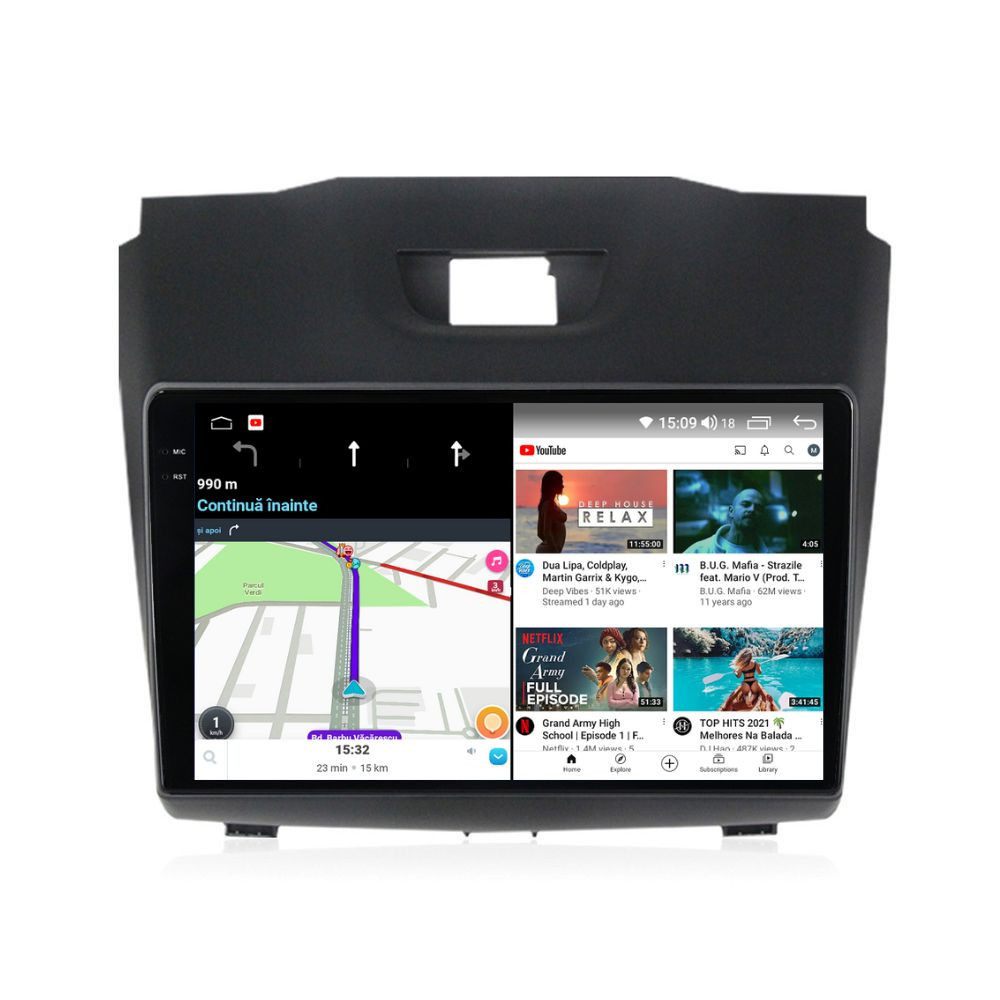 Navigatie dedicata cu Android Isuzu D-Max II 2012 - 2020, 4GB RAM, Radio GPS Dual Zone, Display 2K QLED 9.5 Touchscreen, Internet Wi-Fi si slot SIM 4G, Bluetooth, MirrorLink, USB