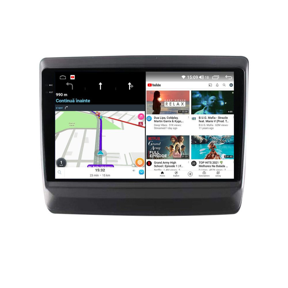 Sistem de operare: Car Android 14 cu meniu în peste 60 de limbi (inclusiv limba română) Procesor: Octa Core UIS7862S 2GHz Memorie internă: 4GB RAM + 32GB stocare (extensibilă prin 3 sloturi USB de maxim 64GB) Display: Touchscreen 9.5 inch QLED 2K 2000x1200, multi-touch, format 16:9, cu margini curbate și tehnologie 2.5D Chipset GPS: Samsung Sirf Star IV cu 48 de canale (antenă GPS inclusă) Fast Boot: Navigația pornește instant în momentul în care se pune contactul Conectivitate: Slot SIM 4G, Wi-Fi Dual Band 2.4Ghz si 5Ghz, Bluetooth, 3 x USB, RCA, AUX Plug & Play: Mufă dedicată, navigaţia preia comenzile de pe volanul maşinii şi nu descarcă bateria acesteia Cooler răcire activă: Ventilatorul integrat menține o temperatură optimă, asigurând astfel navigației o durată de viaţă mai mare Control prin gesturi: Glisezi cu 2 degete în sus sau în jos pentru a modifica volumul sau în lateral pentru schimbarea melodiei Audio: 4 x 45W + ieşire subwoofer, egalizator și procesor de sunet DSP Radio: FM (87.5 - 108.0 Mhz) şi AM (522 - 1620 Khz) cu funcție RDS Dual Zone: Poţi asculta muzică şi folosi aplicaţia preferată de navigare (iGO, Waze, Maps etc.) în acelaşi timp PLUG & PLAY Navigația se potrivește perfect în bord, iar mufa este identică cu cea a maşinii. Nu ai nevoie de altă ramă şi nu trebuie să modifici instalaţia electrică. Comenzile de pe volan rămân funcţionale, iar navigaţia se va opri când iei contactul şi nu va descărca bateria maşinii. În pachet sunt incluse toate cablurile necesare montării navigaţiei, precum şi cele auxiliare (RCA, USB etc.). UNIVERSUL ANDROID ÎN CONFORTUL MAŞINII TALE Aplicaţiile preferate vin acum pe ecranul navigaţiei tale. Poţi instala orice aplicaţie din magazinul Google Play sau de tip APK: Waze, Google Maps, YouTube, Spotify, Google Chrome, Instagram, Facebook, WhatsApp etc. Fără a mai avea nevoie de telefon, te poţi strecura prin traficul aglomerat folosind Waze sau Google Maps şi în acelaşi timp poţi asculta muzica preferată sau viziona filmele și videoclipurile favorite pe YouTube, Spotify, Apple Music etc. GPS DUAL ZONE Navigaţia dispune de un modul şi o antenă GPS de calitate superioară, care te localizează cu precizie şi te ajută să ajungi la destinaţie în cel mai scurt timp, fără a avea nevoie de telefon. Dual zone: Poţi asculta muzică în timp ce foloseşti aplicaţia preferată de navigare, vocea aplicaţiei suprapunându-se, atunci când este cazul, peste muzică. COMPATIBILĂ CU ORICE TELEFON Deşi navigaţia dispune de propriul sistem de operare Android care funcţionează independent de telefon, la aceasta se poate conecta orice telefon cu Android sau iPhone prin Bluetooth sau Wi-Fi. Poţi folosi cu uşurinţă aplicațiile instalate pe telefon prin intermediul Android Auto sau Apple CarPlay şi primeşti toate notificările de pe telefon pe ecranul navigaţiei. SLOT SIM 4G, BLUETOOTH, WI-FI ŞI MIRRORLINK INTEGRATE Spune adio amenzilor pentru folosirea telefonului la volan. Poţi descărca agenda telefonică pe navigaţie şi poţi iniţia şi prelua apeluri de pe ecranul navigaţiei, precum şi asculta muzica preferată de pe telefon. Navigaţia se conectează rapid la orice reţea wireless, inclusiv la hotspot-ul telefonului, precum și la internet 4G, introducând o cartelă cu internet în slotul SIM. Cu ajutorul tehnologiei MirrorLink poţi beneficia de funcțiile Android Auto sau Apple CarPlay. MULTIPLE INTERFEȚE DISPONIBILE Interfața navigației se poate schimba cu ușurință, aceasta având 4 teme preinstalate, astfel încat să se plieze pe stilul și gustul tau. De asemenea, o poți personaliza foarte ușor cu alte teme disponibile în aplicații de tip Car Launcher. Nu trebuie să ştii engleză pentru a putea folosi navigaţia. Poţi afişa meniul în peste 60 de limbi, inclusiv română, engleză, spaniolă sau franceză. SUPORT DVR, CAMERĂ MARȘARIER ȘI SENZORI PARCARE AFTERMARKET Niciodată nu a fost atât de simplu să parchezi. Când schimbătorul ajunge în marșarier, pe ecranul navigației se va afișa automat imaginea video din spatele mașinii, împreună cu liniile de ghidaj. Senzorii de parcare, fiind de asemenea afişaţi pe navigaţie, te vor avertiza atât vizual, cât şi acustic. Înregistrarea video realizată de camera de bord DVR te poate scăpa de amenzi sau alte situaţii neplăcute, fiind martorul tău de încredere în cazul producerii unui eveniment nedorit în trafic. SUPORT INTERFAȚĂ OBDII Un adaptor Bluetooth OBDII este de un real ajutor atunci când o eroare apare în bordul maşinii. Cu ajutorul lui poţi citi, interpreta sau șterge eventualele coduri de eroare şi îţi poţi da seama cu uşurinţă ce nu este în regulă cu maşina ta. În plus, poți afișa pe ecranul navigației informații în timp real despre starea mașinii cu ajutorul unor aplicații dedicate precum Torque sau Car Scanner. NAVIGAȚIE CU ANDROID - SISTEMUL COMPLET DE INFOTAINMENT DIN MAȘINA TA
