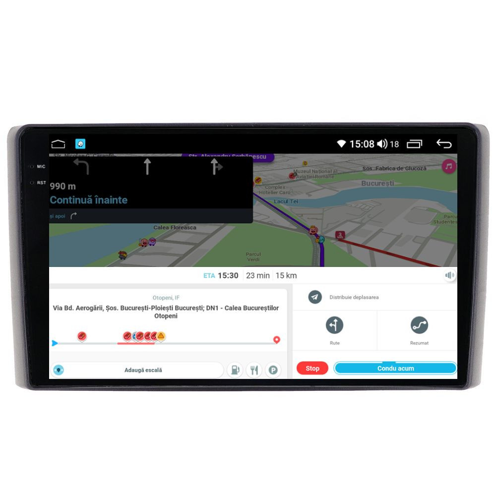 Sistem de operare: Car Android 14 cu meniu în peste 60 de limbi (inclusiv limba română) Procesor: Octa Core UIS7862S 2GHz Memorie internă: 4GB RAM + 32GB stocare (extensibilă prin 3 sloturi USB de maxim 64GB) Display: Touchscreen 9.5 inch QLED 2K 2000x1200, multi-touch, format 16:9, cu margini curbate și tehnologie 2.5D Chipset GPS: Samsung Sirf Star IV cu 48 de canale (antenă GPS inclusă) Fast Boot: Navigația pornește instant în momentul în care se pune contactul Conectivitate: Slot SIM 4G, Wi-Fi Dual Band 2.4Ghz si 5Ghz, Bluetooth, 3 x USB, RCA, AUX Plug & Play: Mufă dedicată, navigaţia preia comenzile de pe volanul maşinii şi nu descarcă bateria acesteia Cooler răcire activă: Ventilatorul integrat menține o temperatură optimă, asigurând astfel navigației o durată de viaţă mai mare Control prin gesturi: Glisezi cu 2 degete în sus sau în jos pentru a modifica volumul sau în lateral pentru schimbarea melodiei Audio: 4 x 45W + ieşire subwoofer, egalizator și procesor de sunet DSP Radio: FM (87.5 - 108.0 Mhz) şi AM (522 - 1620 Khz) cu funcție RDS Dual Zone: Poţi asculta muzică şi folosi aplicaţia preferată de navigare (iGO, Waze, Maps etc.) în acelaşi timp PLUG & PLAY Navigația se potrivește perfect în bord, iar mufa este identică cu cea a maşinii. Nu ai nevoie de altă ramă şi nu trebuie să modifici instalaţia electrică. Comenzile de pe volan rămân funcţionale, iar navigaţia se va opri când iei contactul şi nu va descărca bateria maşinii. În pachet sunt incluse toate cablurile necesare montării navigaţiei, precum şi cele auxiliare (RCA, USB etc.). UNIVERSUL ANDROID ÎN CONFORTUL MAŞINII TALE Aplicaţiile preferate vin acum pe ecranul navigaţiei tale. Poţi instala orice aplicaţie din magazinul Google Play sau de tip APK: Waze, Google Maps, YouTube, Spotify, Google Chrome, Instagram, Facebook, WhatsApp etc. Fără a mai avea nevoie de telefon, te poţi strecura prin traficul aglomerat folosind Waze sau Google Maps şi în acelaşi timp poţi asculta muzica preferată sau viziona filmele și videoclipurile favorite pe YouTube, Spotify, Apple Music etc. GPS DUAL ZONE Navigaţia dispune de un modul şi o antenă GPS de calitate superioară, care te localizează cu precizie şi te ajută să ajungi la destinaţie în cel mai scurt timp, fără a avea nevoie de telefon. Dual zone: Poţi asculta muzică în timp ce foloseşti aplicaţia preferată de navigare, vocea aplicaţiei suprapunându-se, atunci când este cazul, peste muzică. COMPATIBILĂ CU ORICE TELEFON Deşi navigaţia dispune de propriul sistem de operare Android care funcţionează independent de telefon, la aceasta se poate conecta orice telefon cu Android sau iPhone prin Bluetooth sau Wi-Fi. Poţi folosi cu uşurinţă aplicațiile instalate pe telefon prin intermediul Android Auto sau Apple CarPlay şi primeşti toate notificările de pe telefon pe ecranul navigaţiei. SLOT SIM 4G, BLUETOOTH, WI-FI ŞI MIRRORLINK INTEGRATE Spune adio amenzilor pentru folosirea telefonului la volan. Poţi descărca agenda telefonică pe navigaţie şi poţi iniţia şi prelua apeluri de pe ecranul navigaţiei, precum şi asculta muzica preferată de pe telefon. Navigaţia se conectează rapid la orice reţea wireless, inclusiv la hotspot-ul telefonului, precum și la internet 4G, introducând o cartelă cu internet în slotul SIM. Cu ajutorul tehnologiei MirrorLink poţi beneficia de funcțiile Android Auto sau Apple CarPlay. MULTIPLE INTERFEȚE DISPONIBILE Interfața navigației se poate schimba cu ușurință, aceasta având 4 teme preinstalate, astfel încat să se plieze pe stilul și gustul tau. De asemenea, o poți personaliza foarte ușor cu alte teme disponibile în aplicații de tip Car Launcher. Nu trebuie să ştii engleză pentru a putea folosi navigaţia. Poţi afişa meniul în peste 60 de limbi, inclusiv română, engleză, spaniolă sau franceză. SUPORT DVR, CAMERĂ MARȘARIER ȘI SENZORI PARCARE AFTERMARKET Niciodată nu a fost atât de simplu să parchezi. Când schimbătorul ajunge în marșarier, pe ecranul navigației se va afișa automat imaginea video din spatele mașinii, împreună cu liniile de ghidaj. Senzorii de parcare, fiind de asemenea afişaţi pe navigaţie, te vor avertiza atât vizual, cât şi acustic. Înregistrarea video realizată de camera de bord DVR te poate scăpa de amenzi sau alte situaţii neplăcute, fiind martorul tău de încredere în cazul producerii unui eveniment nedorit în trafic. SUPORT INTERFAȚĂ OBDII Un adaptor Bluetooth OBDII este de un real ajutor atunci când o eroare apare în bordul maşinii. Cu ajutorul lui poţi citi, interpreta sau șterge eventualele coduri de eroare şi îţi poţi da seama cu uşurinţă ce nu este în regulă cu maşina ta. În plus, poți afișa pe ecranul navigației informații în timp real despre starea mașinii cu ajutorul unor aplicații dedicate precum Torque sau Car Scanner. NAVIGAȚIE CU ANDROID - SISTEMUL COMPLET DE INFOTAINMENT DIN MAȘINA TA