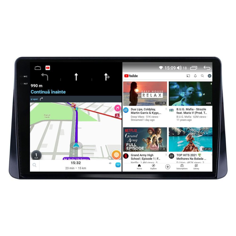Sistem de operare: Car Android 14 cu meniu în peste 60 de limbi (inclusiv limba română) Procesor: Octa Core UIS7862S 2GHz Memorie internă: 4GB RAM + 32GB stocare (extensibilă prin 3 sloturi USB de maxim 64GB) Display: Touchscreen 10.36 inch QLED 2K 2000x1200, multi-touch, format 16:9, cu margini curbate și tehnologie 2.5D Chipset GPS: Samsung Sirf Star IV cu 48 de canale (antenă GPS inclusă) Fast Boot: Navigația pornește instant în momentul în care se pune contactul Conectivitate: Slot SIM 4G, Wi-Fi Dual Band 2.4Ghz si 5Ghz, Bluetooth, 3 x USB, RCA, AUX Plug & Play: Mufă dedicată, navigaţia preia comenzile de pe volanul maşinii şi nu descarcă bateria acesteia Cooler răcire activă: Ventilatorul integrat menține o temperatură optimă, asigurând astfel navigației o durată de viaţă mai mare Control prin gesturi: Glisezi cu 2 degete în sus sau în jos pentru a modifica volumul sau în lateral pentru schimbarea melodiei Audio: 4 x 45W + ieşire subwoofer, egalizator și procesor de sunet DSP Radio: FM (87.5 - 108.0 Mhz) şi AM (522 - 1620 Khz) cu funcție RDS Dual Zone: Poţi asculta muzică şi folosi aplicaţia preferată de navigare (iGO, Waze, Maps etc.) în acelaşi timp PLUG & PLAY Navigația se potrivește perfect în bord, iar mufa este identică cu cea a maşinii. Nu ai nevoie de altă ramă şi nu trebuie să modifici instalaţia electrică. Comenzile de pe volan rămân funcţionale, iar navigaţia se va opri când iei contactul şi nu va descărca bateria maşinii. În pachet sunt incluse toate cablurile necesare montării navigaţiei, precum şi cele auxiliare (RCA, USB etc.). UNIVERSUL ANDROID ÎN CONFORTUL MAŞINII TALE Aplicaţiile preferate vin acum pe ecranul navigaţiei tale. Poţi instala orice aplicaţie din magazinul Google Play sau de tip APK: Waze, Google Maps, YouTube, Spotify, Google Chrome, Instagram, Facebook, WhatsApp etc. Fără a mai avea nevoie de telefon, te poţi strecura prin traficul aglomerat folosind Waze sau Google Maps şi în acelaşi timp poţi asculta muzica preferată sau viziona filmele și videoclipurile favorite pe YouTube, Spotify, Apple Music etc. GPS DUAL ZONE Navigaţia dispune de un modul şi o antenă GPS de calitate superioară, care te localizează cu precizie şi te ajută să ajungi la destinaţie în cel mai scurt timp, fără a avea nevoie de telefon. Dual zone: Poţi asculta muzică în timp ce foloseşti aplicaţia preferată de navigare, vocea aplicaţiei suprapunându-se, atunci când este cazul, peste muzică. COMPATIBILĂ CU ORICE TELEFON Deşi navigaţia dispune de propriul sistem de operare Android care funcţionează independent de telefon, la aceasta se poate conecta orice telefon cu Android sau iPhone prin Bluetooth sau Wi-Fi. Poţi folosi cu uşurinţă aplicațiile instalate pe telefon prin intermediul Android Auto sau Apple CarPlay şi primeşti toate notificările de pe telefon pe ecranul navigaţiei. SLOT SIM 4G, BLUETOOTH, WI-FI ŞI MIRRORLINK INTEGRATE Spune adio amenzilor pentru folosirea telefonului la volan. Poţi descărca agenda telefonică pe navigaţie şi poţi iniţia şi prelua apeluri de pe ecranul navigaţiei, precum şi asculta muzica preferată de pe telefon. Navigaţia se conectează rapid la orice reţea wireless, inclusiv la hotspot-ul telefonului, precum și la internet 4G, introducând o cartelă cu internet în slotul SIM. Cu ajutorul tehnologiei MirrorLink poţi beneficia de funcțiile Android Auto sau Apple CarPlay. MULTIPLE INTERFEȚE DISPONIBILE Interfața navigației se poate schimba cu ușurință, aceasta având 4 teme preinstalate, astfel încat să se plieze pe stilul și gustul tau. De asemenea, o poți personaliza foarte ușor cu alte teme disponibile în aplicații de tip Car Launcher. Nu trebuie să ştii engleză pentru a putea folosi navigaţia. Poţi afişa meniul în peste 60 de limbi, inclusiv română, engleză, spaniolă sau franceză. SUPORT DVR, CAMERĂ MARȘARIER ȘI SENZORI PARCARE AFTERMARKET Niciodată nu a fost atât de simplu să parchezi. Când schimbătorul ajunge în marșarier, pe ecranul navigației se va afișa automat imaginea video din spatele mașinii, împreună cu liniile de ghidaj. Senzorii de parcare, fiind de asemenea afişaţi pe navigaţie, te vor avertiza atât vizual, cât şi acustic. Înregistrarea video realizată de camera de bord DVR te poate scăpa de amenzi sau alte situaţii neplăcute, fiind martorul tău de încredere în cazul producerii unui eveniment nedorit în trafic. SUPORT INTERFAȚĂ OBDII Un adaptor Bluetooth OBDII este de un real ajutor atunci când o eroare apare în bordul maşinii. Cu ajutorul lui poţi citi, interpreta sau șterge eventualele coduri de eroare şi îţi poţi da seama cu uşurinţă ce nu este în regulă cu maşina ta. În plus, poți afișa pe ecranul navigației informații în timp real despre starea mașinii cu ajutorul unor aplicații dedicate precum Torque sau Car Scanner. NAVIGAȚIE CU ANDROID - SISTEMUL COMPLET DE INFOTAINMENT DIN MAȘINA TA