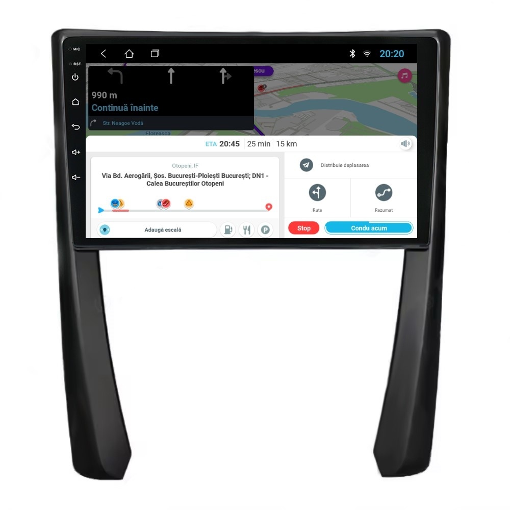 Sistem de operare: Car Android cu meniu în peste 60 de limbi (inclusiv limba română) Procesor: Quad Core ARM Cortex-A7 1.3Ghz Memorie internă: 1GB RAM + 32GB stocare (extensibilă prin 2 sloturi USB de maxim 64GB) Display: Touchscreen 9 inch IPS HD 1280x720, multi-touch, format 16:9, cu margini curbate și tehnologie 2.5D Chipset GPS: Samsung Sirf Star IV cu 48 de canale (antenă GPS inclusă) Conectivitate: Wi-Fi, Bluetooth, 2 x USB, RCA, AUX Plug & Play: Mufă dedicată, navigaţia preia comenzile de pe volanul maşinii şi nu descarcă bateria acesteia Cooler răcire activă: Ventilatorul integrat menține o temperatură optimă, asigurând astfel navigației o durată de viaţă mai mare Audio: 4 x 45W + ieşire subwoofer Radio: FM 87.5 - 108.0 Mhz Dual Zone: Poţi asculta muzică şi folosi aplicaţia preferată de navigare (iGO, Waze, Maps etc.) în acelaşi timp PLUG & PLAY Navigația se potrivește perfect în bord, iar mufa este identică cu cea a maşinii. Nu ai nevoie de altă ramă şi nu trebuie să modifici instalaţia electrică. Comenzile de pe volan rămân funcţionale, iar navigaţia se va opri când iei contactul şi nu va descărca bateria maşinii. În pachet sunt incluse toate cablurile necesare montării navigaţiei, precum şi cele auxiliare (RCA, USB etc.). UNIVERSUL ANDROID ÎN CONFORTUL MAŞINII TALE Aplicaţiile preferate vin acum pe ecranul navigaţiei tale. Poţi instala orice aplicaţie din magazinul Google Play sau de tip APK: Waze, Google Maps, YouTube, Spotify, Google Chrome, Instagram, Facebook, WhatsApp etc. Fără a mai avea nevoie de telefon, te poţi strecura prin traficul aglomerat folosind Waze sau Google Maps şi în acelaşi timp poţi asculta muzica preferată sau viziona filmele și videoclipurile favorite pe YouTube, Spotify, Apple Music etc. GPS DUAL ZONE Navigaţia dispune de un modul şi o antenă GPS de calitate superioară, care te localizează cu precizie şi te ajută să ajungi la destinaţie în cel mai scurt timp, fără a avea nevoie de telefon. Dual zone: Poţi asculta muzică în timp ce foloseşti aplicaţia preferată de navigare, vocea aplicaţiei suprapunându-se, atunci când este cazul, peste muzică. COMPATIBILĂ CU ORICE TELEFON Deşi navigaţia dispune de propriul sistem de operare Android care funcţionează independent de telefon, la aceasta se poate conecta orice telefon cu Android sau iPhone prin Bluetooth sau Wi-Fi. Poţi folosi cu uşurinţă orice aplicaţie instalată pe telefon fără a o instala şi pe navigaţie şi primeşti toate notificările de pe telefon direct pe ecranul navigaţiei. BLUETOOTH, WI-FI ŞI MIRRORLINK INTEGRATE Spune adio amenzilor pentru folosirea telefonului la volan. Poţi descărca contactele din telefon pe navigaţie şi poţi iniţia şi prelua apeluri direct de pe ecranul navigaţiei, precum şi asculta muzica preferată de pe telefon. Navigaţia se conectează rapid la orice reţea wireless, inclusiv la hotspot-ul telefonului, iar cu ajutorul tehnologiei MirrorLink poţi oglindi imaginea telefonului pe navigaţie. MULTIPLE INTERFEȚE DISPONIBILE Interfața navigației se poate schimba cu ușurință, aceasta având 4 teme preinstalate, astfel încat să se plieze pe stilul și gustul tau. De asemenea, o poți personaliza foarte ușor cu alte teme disponibile în aplicații de tip Car Launcher. Nu trebuie să ştii engleză pentru a putea folosi navigaţia. Poţi afişa meniul în peste 60 de limbi, inclusiv română, engleză, spaniolă sau franceză. SUPORT DVR, CAMERĂ MARȘARIER ȘI SENZORI PARCARE AFTERMARKET Niciodată nu a fost atât de simplu să parchezi. Când schimbătorul ajunge în marșarier, pe ecranul navigației se va afișa automat imaginea video din spatele mașinii, împreună cu liniile de ghidaj. Senzorii de parcare, fiind de asemenea afişaţi pe navigaţie, te vor avertiza atât vizual, cât şi acustic. Înregistrarea video realizată de camera de bord DVR te poate scăpa de amenzi sau alte situaţii neplăcute, fiind martorul tău de încredere în cazul producerii unui eveniment nedorit în trafic. SUPORT INTERFAȚĂ OBDII Un adaptor Bluetooth OBDII este de un real ajutor atunci când o eroare apare în bordul maşinii. Cu ajutorul lui poţi citi, interpreta sau șterge eventualele coduri de eroare şi îţi poţi da seama cu uşurinţă ce nu este în regulă cu maşina ta. În plus, poți afișa pe ecranul navigației informații în timp real despre starea mașinii cu ajutorul unor aplicații dedicate precum Torque sau Car Scanner. NAVIGAȚIE CU ANDROID - SISTEMUL COMPLET DE INFOTAINMENT DIN MAȘINA TA