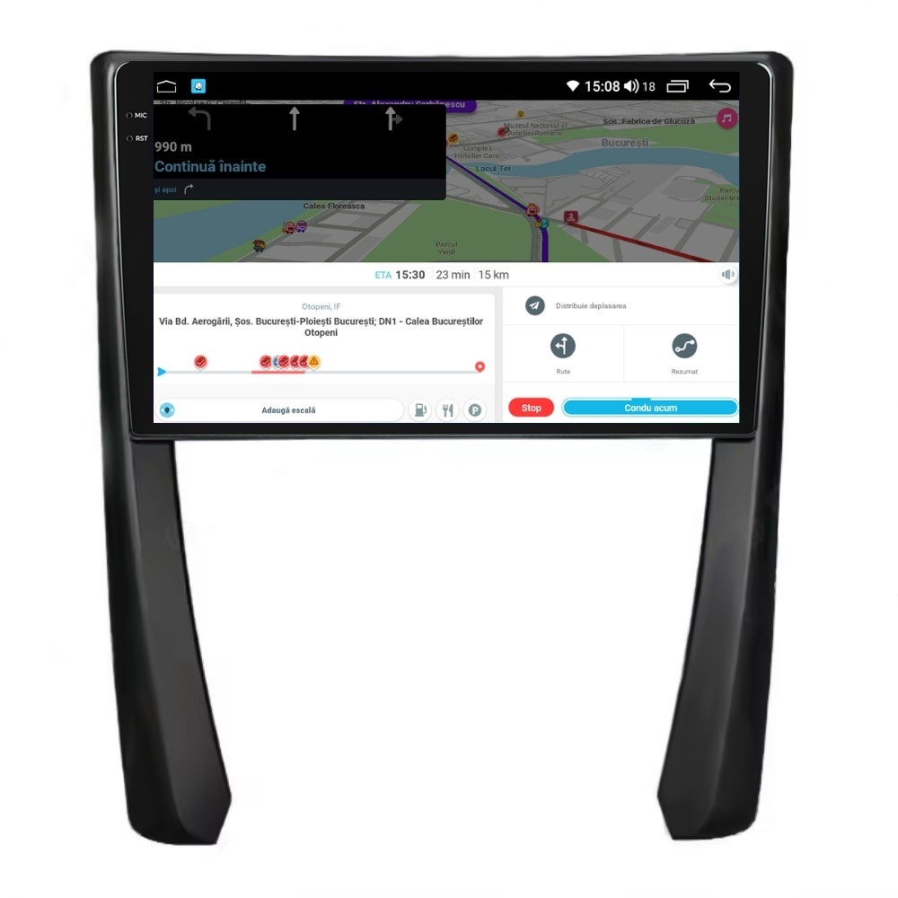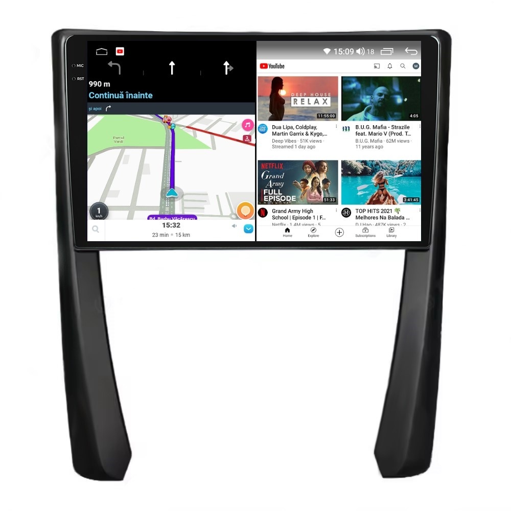 Sistem de operare: Car Android 13 cu meniu în peste 60 de limbi (inclusiv limba română) Procesor: Octa Core UIS7862S 2GHz Memorie internă: 8GB RAM + 128GB stocare (extensibilă prin 3 sloturi USB de maxim 64GB) Display: Touchscreen 9.5 inch QLED 2K 2000x1200, multi-touch, format 16:9, cu margini curbate și tehnologie 2.5D Chipset GPS: Samsung Sirf Star IV cu 48 de canale (antenă GPS inclusă) Fast Boot: Navigația pornește instant în momentul în care se pune contactul Conectivitate: Slot SIM 4G, Wi-Fi Dual Band 2.4Ghz si 5Ghz, Bluetooth, 3 x USB, RCA, AUX Plug & Play: Mufă dedicată, navigaţia preia comenzile de pe volanul maşinii şi nu descarcă bateria acesteia Cooler răcire activă: Ventilatorul integrat menține o temperatură optimă, asigurând astfel navigației o durată de viaţă mai mare Control prin gesturi: Glisezi cu 2 degete în sus sau în jos pentru a modifica volumul sau în lateral pentru schimbarea melodiei Asistent virtual: Poţi controla cu ușurință navigația prin comenzi vocale cu ajutorul asistentului virtual integrat Audio: 4 x 45W + ieşire subwoofer, DTS 4.1 & 5.1, egalizator și procesor de sunet DSP Radio: FM (87.5 - 108.0 Mhz) şi AM (522 - 1620 Khz) cu funcție RDS Dual Zone: Poţi asculta muzică şi folosi aplicaţia preferată de navigare (iGO, Waze, Maps etc.) în acelaşi timp PLUG & PLAY Navigația se potrivește perfect în bord, iar mufa este identică cu cea a maşinii. Nu ai nevoie de altă ramă şi nu trebuie să modifici instalaţia electrică. Comenzile de pe volan rămân funcţionale, iar navigaţia se va opri când iei contactul şi nu va descărca bateria maşinii. În pachet sunt incluse toate cablurile necesare montării navigaţiei, precum şi cele auxiliare (RCA, USB etc.). UNIVERSUL ANDROID ÎN CONFORTUL MAŞINII TALE Aplicaţiile preferate vin acum pe ecranul navigaţiei tale. Poţi instala orice aplicaţie din magazinul Google Play sau de tip APK: Waze, Google Maps, YouTube, Spotify, Google Chrome, Instagram, Facebook, WhatsApp etc. Fără a mai avea nevoie de telefon, te poţi strecura prin traficul aglomerat folosind Waze sau Google Maps şi în acelaşi timp poţi asculta muzica preferată sau viziona filmele și videoclipurile favorite pe YouTube, Spotify, Apple Music etc. GPS DUAL ZONE Navigaţia dispune de un modul şi o antenă GPS de calitate superioară, care te localizează cu precizie şi te ajută să ajungi la destinaţie în cel mai scurt timp, fără a avea nevoie de telefon. Dual zone: Poţi asculta muzică în timp ce foloseşti aplicaţia preferată de navigare, vocea aplicaţiei suprapunându-se, atunci când este cazul, peste muzică. COMPATIBILĂ CU ORICE TELEFON Deşi navigaţia dispune de propriul sistem de operare Android care funcţionează independent de telefon, la aceasta se poate conecta orice telefon cu Android sau iPhone prin Bluetooth sau Wi-Fi. Poţi folosi cu uşurinţă aplicațiile instalate pe telefon prin intermediul Android Auto sau Apple CarPlay şi primeşti toate notificările de pe telefon pe ecranul navigaţiei. SLOT SIM 4G, BLUETOOTH, WI-FI ŞI MIRRORLINK INTEGRATE Spune adio amenzilor pentru folosirea telefonului la volan. Poţi descărca agenda telefonică pe navigaţie şi poţi iniţia şi prelua apeluri de pe ecranul navigaţiei, precum şi asculta muzica preferată de pe telefon. Navigaţia se conectează rapid la orice reţea wireless, inclusiv la hotspot-ul telefonului, precum și la internet 4G, introducând o cartelă cu internet în slotul SIM. Cu ajutorul tehnologiei MirrorLink poţi beneficia de funcțiile Android Auto sau Apple CarPlay. MULTIPLE INTERFEȚE DISPONIBILE Interfața navigației se poate schimba cu ușurință, aceasta având 4 teme preinstalate, astfel încat să se plieze pe stilul și gustul tau. De asemenea, o poți personaliza foarte ușor cu alte teme disponibile în aplicații de tip Car Launcher. Nu trebuie să ştii engleză pentru a putea folosi navigaţia. Poţi afişa meniul în peste 60 de limbi, inclusiv română, engleză, spaniolă sau franceză. SUPORT DVR, CAMERĂ MARȘARIER ȘI SENZORI PARCARE AFTERMARKET Niciodată nu a fost atât de simplu să parchezi. Când schimbătorul ajunge în marșarier, pe ecranul navigației se va afișa automat imaginea video din spatele mașinii, împreună cu liniile de ghidaj. Senzorii de parcare, fiind de asemenea afişaţi pe navigaţie, te vor avertiza atât vizual, cât şi acustic. Înregistrarea video realizată de camera de bord DVR te poate scăpa de amenzi sau alte situaţii neplăcute, fiind martorul tău de încredere în cazul producerii unui eveniment nedorit în trafic. SUPORT INTERFAȚĂ OBDII Un adaptor Bluetooth OBDII este de un real ajutor atunci când o eroare apare în bordul maşinii. Cu ajutorul lui poţi citi, interpreta sau șterge eventualele coduri de eroare şi îţi poţi da seama cu uşurinţă ce nu este în regulă cu maşina ta. În plus, poți afișa pe ecranul navigației informații în timp real despre starea mașinii cu ajutorul unor aplicații dedicate precum Torque sau Car Scanner. NAVIGAȚIE CU ANDROID - SISTEMUL COMPLET DE INFOTAINMENT DIN MAȘINA TA