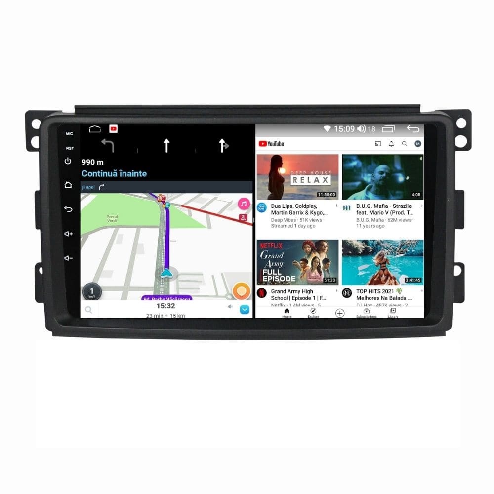 Sistem de operare: Car Android 14 cu meniu în peste 60 de limbi (inclusiv limba română) Procesor: Octa Core ARM Cortex A55 1.6GHz Memorie internă: 2GB RAM + 32GB stocare (extensibilă prin 2 sloturi USB de maxim 64GB) Display: Touchscreen 9 inch QLED HD 1280x720, multi-touch, format 16:9, cu margini curbate și tehnologie 2.5D Chipset GPS: Samsung Sirf Star IV cu 48 de canale (antenă GPS inclusă) Fast Boot: Navigația pornește instant în momentul în care se pune contactul Conectivitate: Slot SIM 4G, Wi-Fi, Bluetooth, 2 x USB, RCA, AUX Plug & Play: Mufă dedicată, navigaţia preia comenzile de pe volanul maşinii şi nu descarcă bateria acesteia Cooler răcire activă: Ventilatorul integrat menține o temperatură optimă, asigurând astfel navigației o durată de viaţă mai mare Audio: 4 x 45W + ieşire subwoofer, egalizator și procesor de sunet DSP Radio: FM (87.5 - 108.0 Mhz) cu funcție RDS Dual Zone: Poţi asculta muzică şi folosi aplicaţia preferată de navigare (iGO, Waze, Maps etc.) în acelaşi timp PLUG & PLAY Navigația se potrivește perfect în bord, iar mufa este identică cu cea a maşinii. Nu ai nevoie de altă ramă şi nu trebuie să modifici instalaţia electrică. Comenzile de pe volan rămân funcţionale, iar navigaţia se va opri când iei contactul şi nu va descărca bateria maşinii. În pachet sunt incluse toate cablurile necesare montării navigaţiei, precum şi cele auxiliare (RCA, USB etc.). UNIVERSUL ANDROID ÎN CONFORTUL MAŞINII TALE Aplicaţiile preferate vin acum pe ecranul navigaţiei tale. Poţi instala orice aplicaţie din magazinul Google Play sau de tip APK: Waze, Google Maps, YouTube, Spotify, Google Chrome, Instagram, Facebook, WhatsApp etc. Fără a mai avea nevoie de telefon, te poţi strecura prin traficul aglomerat folosind Waze sau Google Maps şi în acelaşi timp poţi asculta muzica preferată sau viziona filmele și videoclipurile favorite pe YouTube, Spotify, Apple Music etc. GPS DUAL ZONE Navigaţia dispune de un modul şi o antenă GPS de calitate superioară, care te localizează cu precizie şi te ajută să ajungi la destinaţie în cel mai scurt timp, fără a avea nevoie de telefon. Dual zone: Poţi asculta muzică în timp ce foloseşti aplicaţia preferată de navigare, vocea aplicaţiei suprapunându-se, atunci când este cazul, peste muzică. COMPATIBILĂ CU ORICE TELEFON Deşi navigaţia dispune de propriul sistem de operare Android care funcţionează independent de telefon, la aceasta se poate conecta orice telefon cu Android sau iPhone prin Bluetooth sau Wi-Fi. Poţi folosi cu uşurinţă aplicațiile instalate pe telefon prin intermediul Android Auto sau Apple CarPlay şi primeşti toate notificările de pe telefon pe ecranul navigaţiei. SLOT SIM 4G, BLUETOOTH, WI-FI ŞI MIRRORLINK INTEGRATE Spune adio amenzilor pentru folosirea telefonului la volan. Poţi descărca agenda telefonică pe navigaţie şi poţi iniţia şi prelua apeluri de pe ecranul navigaţiei, precum şi asculta muzica preferată de pe telefon. Navigaţia se conectează rapid la orice reţea wireless, inclusiv la hotspot-ul telefonului, precum și la internet 4G, introducând o cartelă cu internet în slotul SIM. Cu ajutorul tehnologiei MirrorLink poţi beneficia de funcțiile Android Auto sau Apple CarPlay. MULTIPLE INTERFEȚE DISPONIBILE Interfața navigației se poate schimba cu ușurință, aceasta având 4 teme preinstalate, astfel încat să se plieze pe stilul și gustul tau. De asemenea, o poți personaliza foarte ușor cu alte teme disponibile în aplicații de tip Car Launcher. Nu trebuie să ştii engleză pentru a putea folosi navigaţia. Poţi afişa meniul în peste 60 de limbi, inclusiv română, engleză, spaniolă sau franceză. SUPORT DVR, CAMERĂ MARȘARIER ȘI SENZORI PARCARE AFTERMARKET Niciodată nu a fost atât de simplu să parchezi. Când schimbătorul ajunge în marșarier, pe ecranul navigației se va afișa automat imaginea video din spatele mașinii, împreună cu liniile de ghidaj. Senzorii de parcare, fiind de asemenea afişaţi pe navigaţie, te vor avertiza atât vizual, cât şi acustic. Înregistrarea video realizată de camera de bord DVR te poate scăpa de amenzi sau alte situaţii neplăcute, fiind martorul tău de încredere în cazul producerii unui eveniment nedorit în trafic. SUPORT INTERFAȚĂ OBDII Un adaptor Bluetooth OBDII este de un real ajutor atunci când o eroare apare în bordul maşinii. Cu ajutorul lui poţi citi, interpreta sau șterge eventualele coduri de eroare şi îţi poţi da seama cu uşurinţă ce nu este în regulă cu maşina ta. În plus, poți afișa pe ecranul navigației informații în timp real despre starea mașinii cu ajutorul unor aplicații dedicate precum Torque sau Car Scanner. NAVIGAȚIE CU ANDROID - SISTEMUL COMPLET DE INFOTAINMENT DIN MAȘINA TA