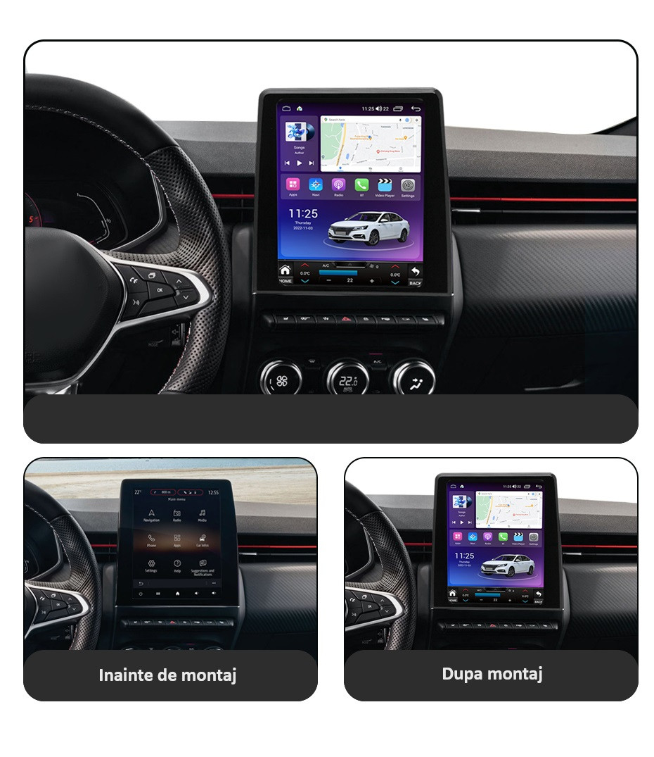 Navigatie dedicata cu Android tip tesla Renault Clio V dupa 2019, 2GB RAM, Radio GPS Dual Zone, Touchscreen IPS 9.7 HD, Internet Wi-Fi, Bluetooth, MirrorLink, USB