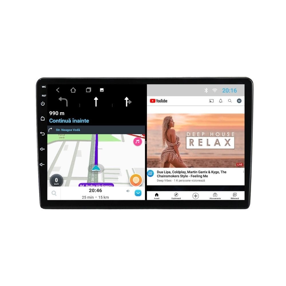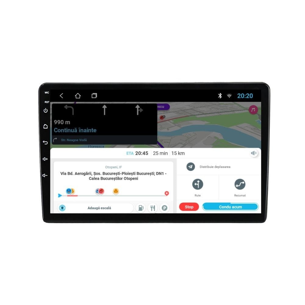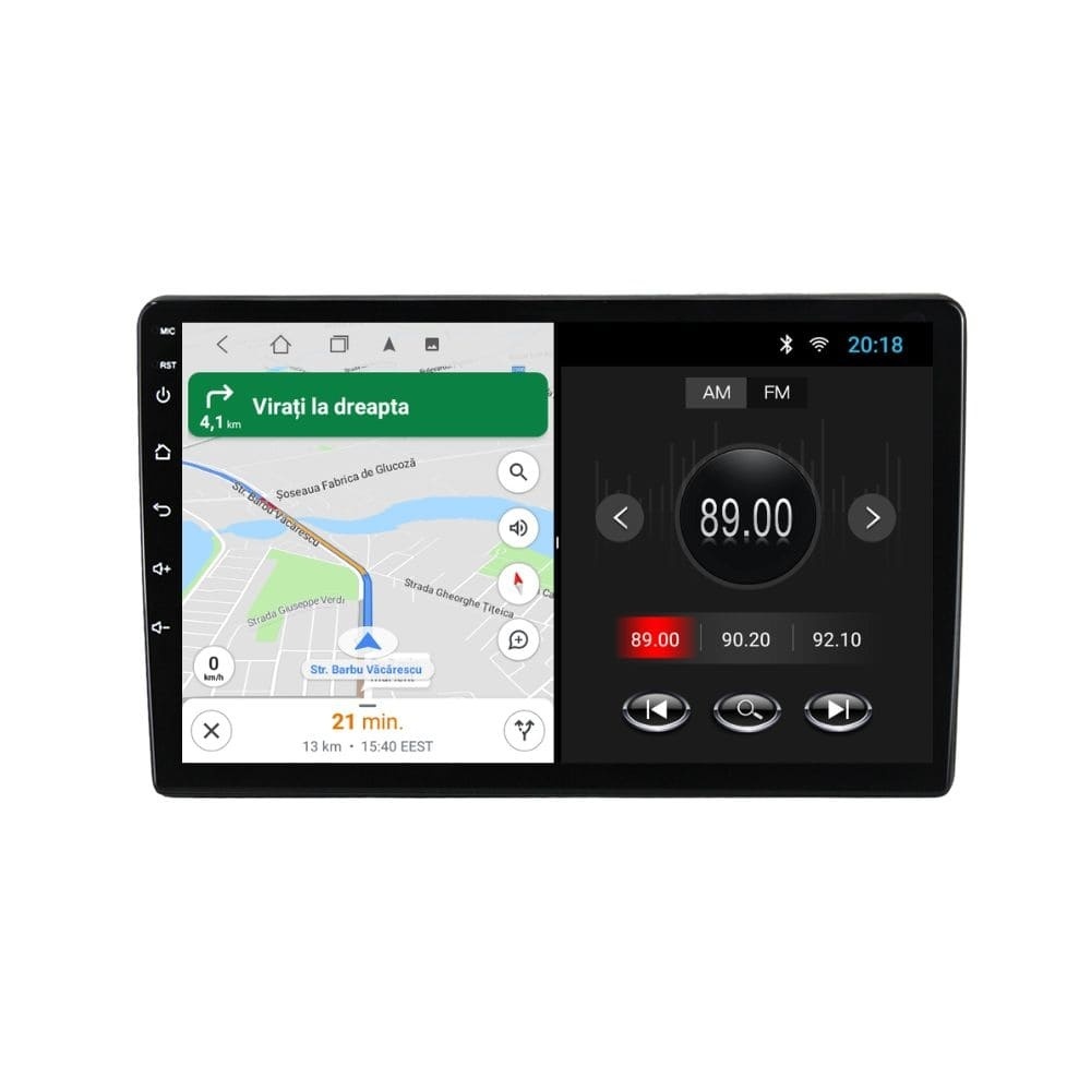 Sistem de operare: Car Android cu meniu în peste 60 de limbi (inclusiv limba română) Procesor: Quad Core ARM Cortex-A7 1.3Ghz Memorie internă: 2GB RAM + 32GB stocare (extensibilă prin 2 sloturi USB de maxim 64GB) Display: Touchscreen 9 inch IPS HD 1280x720, multi-touch, format 16:9, cu margini curbate și tehnologie 2.5D Chipset GPS: Samsung Sirf Star IV cu 48 de canale (antenă GPS inclusă) Conectivitate: Wi-Fi, Bluetooth, 2 x USB, RCA, AUX Plug & Play: Mufă dedicată, navigaţia preia comenzile de pe volanul maşinii şi nu descarcă bateria acesteia Cooler răcire activă: Ventilatorul integrat menține o temperatură optimă, asigurând astfel navigației o durată de viaţă mai mare Audio: 4 x 45W + ieşire subwoofer Radio: FM 87.5 - 108.0 Mhz Dual Zone: Poţi asculta muzică şi folosi aplicaţia preferată de navigare (iGO, Waze, Maps etc.) în acelaşi timp PLUG & PLAY Navigația se potrivește perfect în bord, iar mufa este identică cu cea a maşinii. Nu ai nevoie de altă ramă şi nu trebuie să modifici instalaţia electrică. Comenzile de pe volan rămân funcţionale, iar navigaţia se va opri când iei contactul şi nu va descărca bateria maşinii. În pachet sunt incluse toate cablurile necesare montării navigaţiei, precum şi cele auxiliare (RCA, USB etc.). UNIVERSUL ANDROID ÎN CONFORTUL MAŞINII TALE Aplicaţiile preferate vin acum pe ecranul navigaţiei tale. Poţi instala orice aplicaţie din magazinul Google Play sau de tip APK: Waze, Google Maps, YouTube, Spotify, Google Chrome, Instagram, Facebook, WhatsApp etc. Fără a mai avea nevoie de telefon, te poţi strecura prin traficul aglomerat folosind Waze sau Google Maps şi în acelaşi timp poţi asculta muzica preferată sau viziona filmele și videoclipurile favorite pe YouTube, Spotify, Apple Music etc. GPS DUAL ZONE Navigaţia dispune de un modul şi o antenă GPS de calitate superioară, care te localizează cu precizie şi te ajută să ajungi la destinaţie în cel mai scurt timp, fără a avea nevoie de telefon. Dual zone: Poţi asculta muzică în timp ce foloseşti aplicaţia preferată de navigare, vocea aplicaţiei suprapunându-se, atunci când este cazul, peste muzică. COMPATIBILĂ CU ORICE TELEFON Deşi navigaţia dispune de propriul sistem de operare Android care funcţionează independent de telefon, la aceasta se poate conecta orice telefon cu Android sau iPhone prin Bluetooth sau Wi-Fi. Poţi folosi cu uşurinţă orice aplicaţie instalată pe telefon fără a o instala şi pe navigaţie şi primeşti toate notificările de pe telefon direct pe ecranul navigaţiei. BLUETOOTH, WI-FI ŞI MIRRORLINK INTEGRATE Spune adio amenzilor pentru folosirea telefonului la volan. Poţi descărca contactele din telefon pe navigaţie şi poţi iniţia şi prelua apeluri direct de pe ecranul navigaţiei, precum şi asculta muzica preferată de pe telefon. Navigaţia se conectează rapid la orice reţea wireless, inclusiv la hotspot-ul telefonului, iar cu ajutorul tehnologiei MirrorLink poţi oglindi imaginea telefonului pe navigaţie. MULTIPLE INTERFEȚE DISPONIBILE Interfața navigației se poate schimba cu ușurință, aceasta având 4 teme preinstalate, astfel încat să se plieze pe stilul și gustul tau. De asemenea, o poți personaliza foarte ușor cu alte teme disponibile în aplicații de tip Car Launcher. Nu trebuie să ştii engleză pentru a putea folosi navigaţia. Poţi afişa meniul în peste 60 de limbi, inclusiv română, engleză, spaniolă sau franceză. SUPORT DVR, CAMERĂ MARȘARIER ȘI SENZORI PARCARE AFTERMARKET Niciodată nu a fost atât de simplu să parchezi. Când schimbătorul ajunge în marșarier, pe ecranul navigației se va afișa automat imaginea video din spatele mașinii, împreună cu liniile de ghidaj. Senzorii de parcare, fiind de asemenea afişaţi pe navigaţie, te vor avertiza atât vizual, cât şi acustic. Înregistrarea video realizată de camera de bord DVR te poate scăpa de amenzi sau alte situaţii neplăcute, fiind martorul tău de încredere în cazul producerii unui eveniment nedorit în trafic. SUPORT INTERFAȚĂ OBDII Un adaptor Bluetooth OBDII este de un real ajutor atunci când o eroare apare în bordul maşinii. Cu ajutorul lui poţi citi, interpreta sau șterge eventualele coduri de eroare şi îţi poţi da seama cu uşurinţă ce nu este în regulă cu maşina ta. În plus, poți afișa pe ecranul navigației informații în timp real despre starea mașinii cu ajutorul unor aplicații dedicate precum Torque sau Car Scanner. NAVIGAȚIE CU ANDROID - SISTEMUL COMPLET DE INFOTAINMENT DIN MAȘINA TA