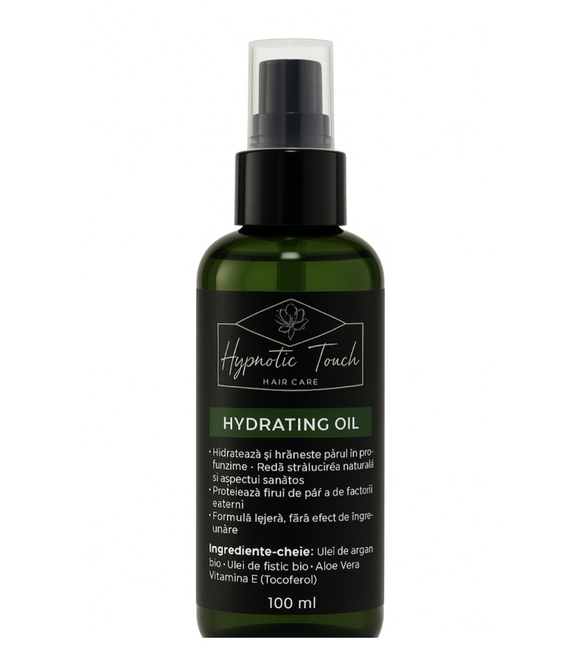 Șampon Hidratant – Hypnotic Touch Curățare delicată și hidratare intensă într-o singură spălare! Acest șampon îmbogățit cu ulei de fistic și extract de moringa lasă părul curat, suplu și plin de vitalitate. Ideal pentru părul uscat, vopsit sau deteriorat. ✅ Curăță delicat scalpul și părul ✅ Hidratare profundă, fără a îngreuna firul de păr ✅ Pregătește părul pentru tratamentele nutritive ⸻ Mască Hidratantă – Hypnotic Touch Tratament concentrat pentru un păr moale și sănătos! Masca este bogată în vitamine, proteine și minerale, hrănind părul în profunzime. Restructurează firul de păr, repară vârfurile despicate și redă suplețea naturală. ✅ Hrănește intens și repară părul ✅ Ușurează pieptănarea și previne ruperea ✅ Conferă strălucire și elasticitate ⸻ Ulei Hidratant – Hypnotic Touch Strălucire, protecție și efect anti-frizz! Uleiul ușor, cu argan și fistic, este ideal pentru toate tipurile de păr. Se absoarbe rapid și protejează împotriva factorilor externi, oferind un aspect neted și sănătos. ✅ Hidratează și disciplinează părul ✅ Protecție termică ușoară ✅ Nu îngrașă și nu încarcă