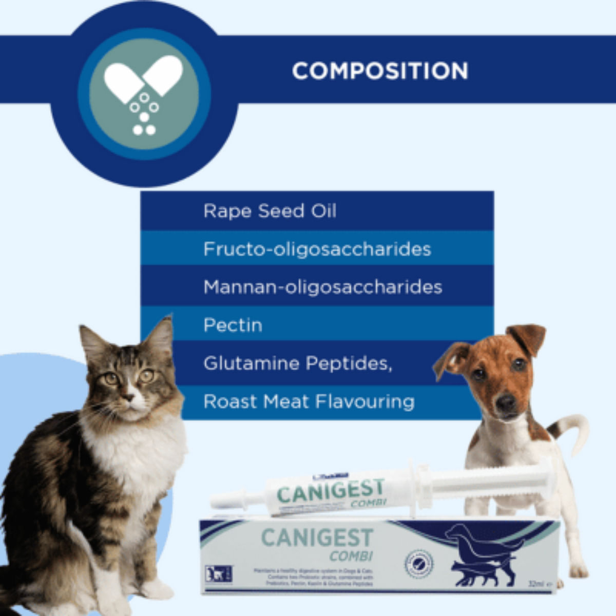 TRM Canigest Combi, supliment sistem digestiv & probiotice câini, suspensie orală TRM Canigest Combi, XS-XL, supliment sistem digestiv & probiotice câini și pisici, flacon, 32ml suspensie orală